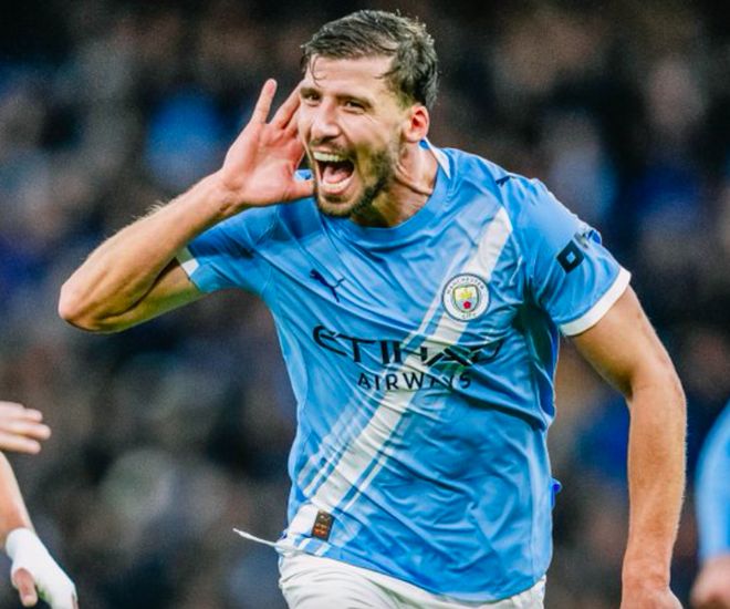 第34分钟,曼城获得角球,福登将球开出,格瓦迪奥尔高高跃起,头槌破门。