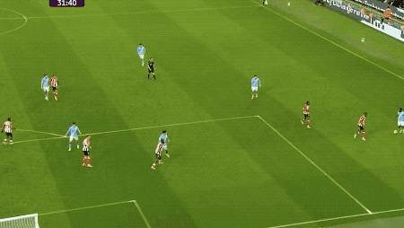 第65分钟,谢尔基再次展示娴熟的技术,曼城的新10号上演插花脚传中,福登的头球击中门柱,弹进球网。